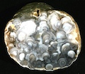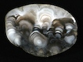 Occasionally in places like this somebody finds some exceptional specimens. This is exactly what a friend of mine, Mike Forster, managed to do while carefully examining the beaches of the south part of the Ross of Mull. After many collecting visits he managed to find these two beautiful specimens below showing the characteristic whorly patterning seen in agates from here. |